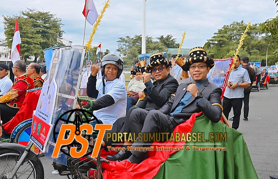 //Portalsumuttabagsel.com||- Penjabat Wali Kota Padangsidimpuan Pakai Baju Adat Angkola, Naik Becak Bersama Pj. Gubsu & Bupati/Wali Kota se Sumut Menuju Lokasi Musrenbang RKPD 2025