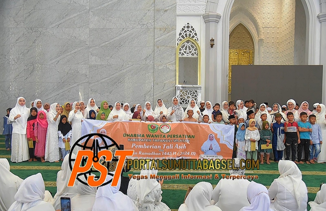 //Portalsumuttabagsel.com||- Dalam rangka meningkatkan keimanan dan ketakwaan di bulan Ramadan 1445 H, Dharma Wanita Persatuan (DWP) Kabupaten Tapanuli Selatan menggelar pengajian bersama sekaligus pemberian tali asih kepada anak yatim di Masjid Syahrun Nur Komplek Perkantoran Pemkab Tapsel, Jalan Prof Lafran Pane, Sipirok, Kamis (14/3/2024).