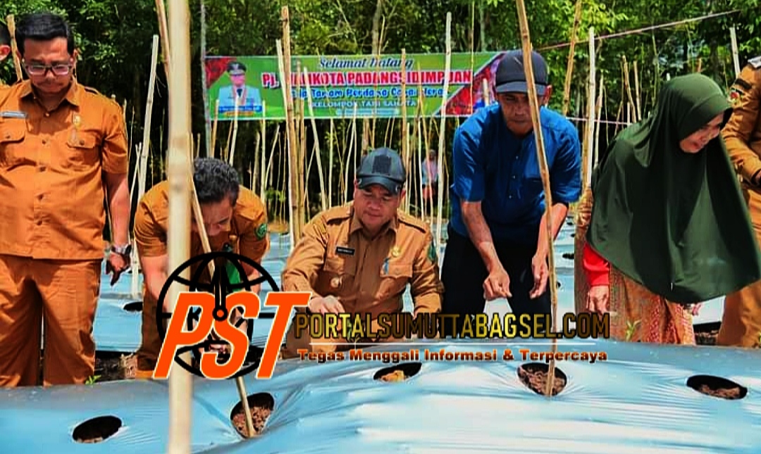 //portalsumuttabagsel.com||- Pj. Wali Kota Padangsidimpuan, H. Timur Tumanggor, S Sos, M.AP ikuti penanaman perdana cabai merah bersama Kelompok tani (Koptan) Sahata, di desa Joring Natobang, Kecamatan Padangsidimpuan Angkola Julu, Kota Padangsidimpuan Selasa (2/7/2024).