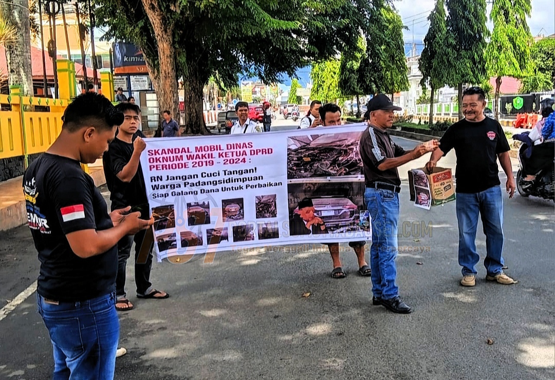 RN, Oknum DPRD Jangan Biarkan Aset Pemko Padangsidimpuan Mangkrak! Donasi Sekarang untuk Perbaikan Mobil Dinas BB 1660 F, Skandal Mobil Dinas Oknum Wakil Ketua DPRD Periode 2019 – 2024: RN Jangan Cuci Tangan! Warga Padangsidimpuan Siap Galang Dana Untuk Perbaikan. Aksi ini bertujuan mengajak masyarakat yang melintas untuk menyumbang.