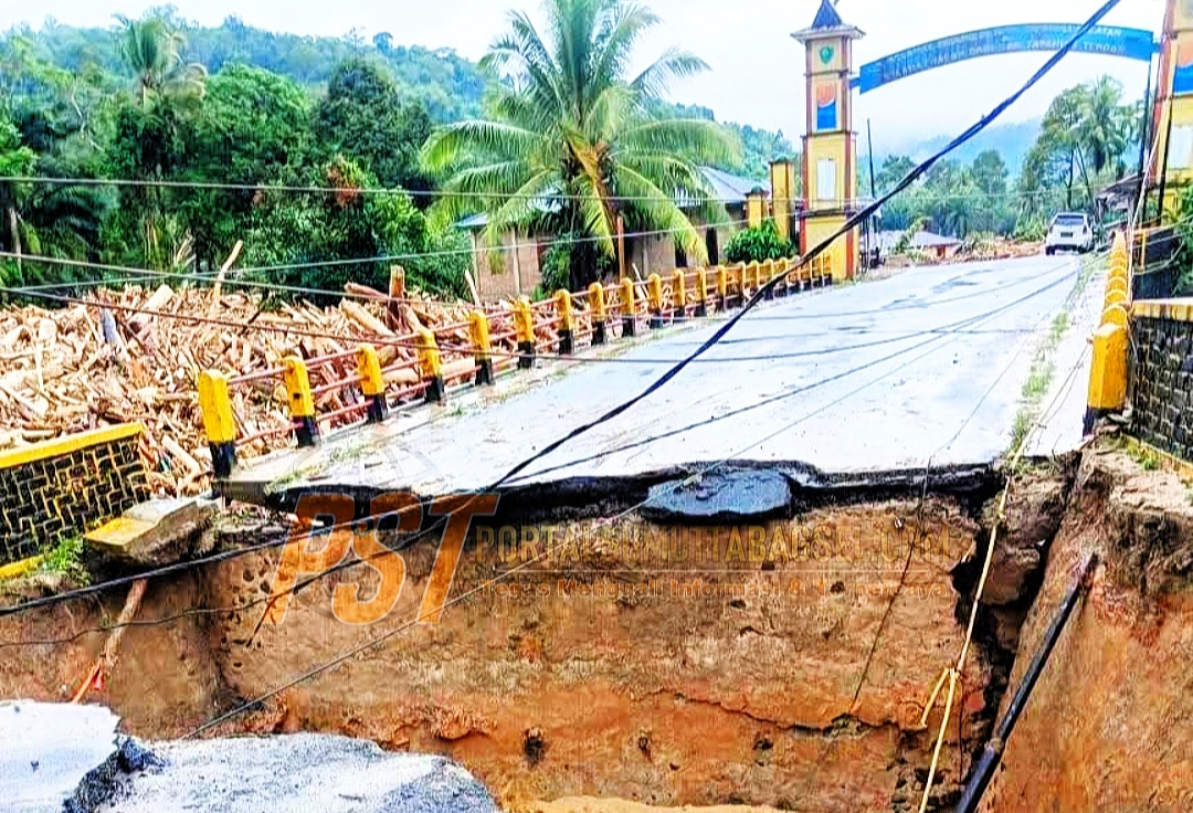 //portalsumuttabagsel.com||- Hujan deras yang mengguyur wilayah Kabupaten Tapanuli Selatan (Tapsel) dan Kabupaten Tapanuli Tengah (Tapteng) menyebabkan Jembatan Anggoli di perbatasan kedua kabupaten putus, Rabu pagi (26/11/2025).