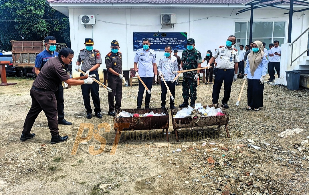 //portalsumuttabagsel.com||- Kepala kepolisian Resort Padang Lawas Hadiri dan Amankan pemusnahan Barang Bukti Jenis Narkotika dan ganja di halaman Kejari Padang Lawas